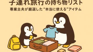 子育て 子連れ旅行の持ち物リスト|専業主夫が厳選した“本当に使える”アイテム はじめに:子連れ旅行は「持ち物」で決まる子連れ旅行は準備が9割。大人だけの旅行とは違い、子供の年齢や性格によって「あると助かる」ものがまったく変わってきます。私自身、専業主夫として何度も子連れで新幹線や飛行機・ホテル滞在を経験してきました。... 2025.10.09 子育て
