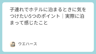 子育て 子連れでホテルに泊まるときに気をつけたい5つのポイント|実際に泊まって感じたこと 「子連れでの旅行って本当に休まるの?」そう感じたのは、私が初めて子供を連れてホテルに泊まった時のことでした。私は子供が生まれる前から旅行は好きでしたが、子供の荷物の準備や当日までバタバタ。でも、いくつかのポイントを意識したことで、子供も私も... 2025.10.07 子育て