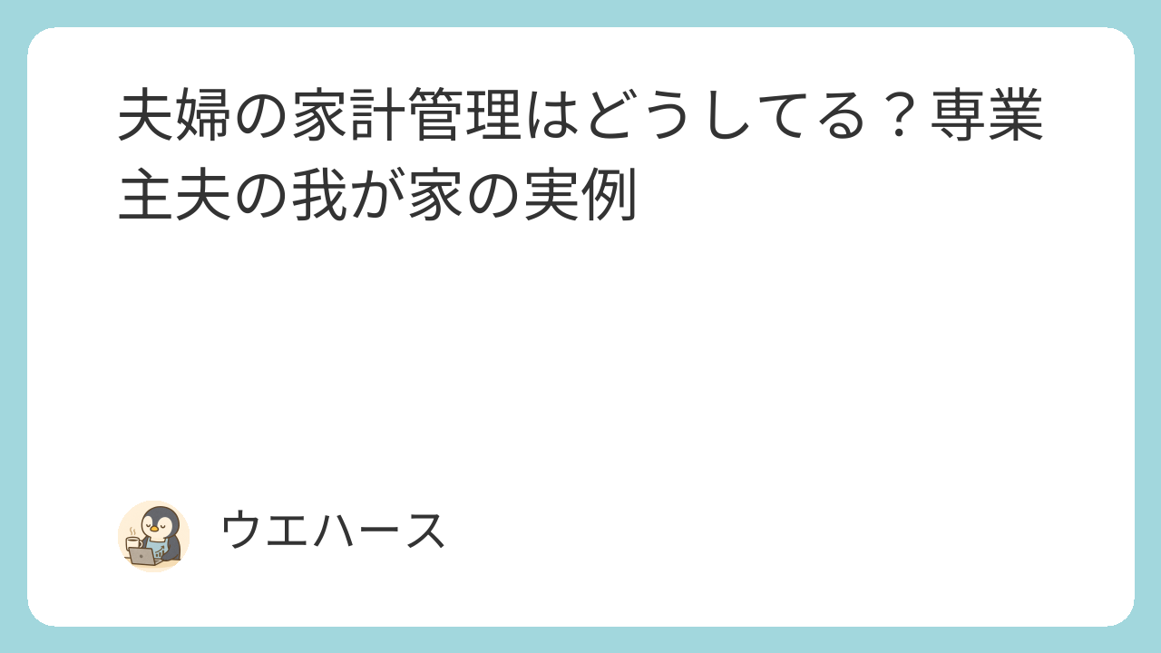夫婦の家計管理はどうしてる?専業主夫の我が家の実例